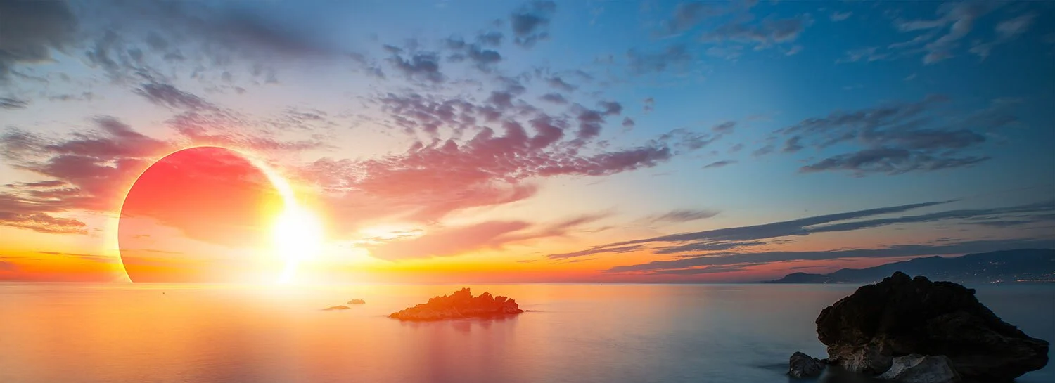 The reason for a solar eclipse is because of a phenomenon known as a syzygy. A syzygy is the nearly straight configuration of three celestial bodies in a gravitational system. The three bodies in a solar eclipse are the Earth, Moon and Sun, with the Moon in a new moon phase between the Earth and the Sun. The eclipse mechanics of a total or annular depends on the Moon’s distance as it passes between Earth and the Sun.