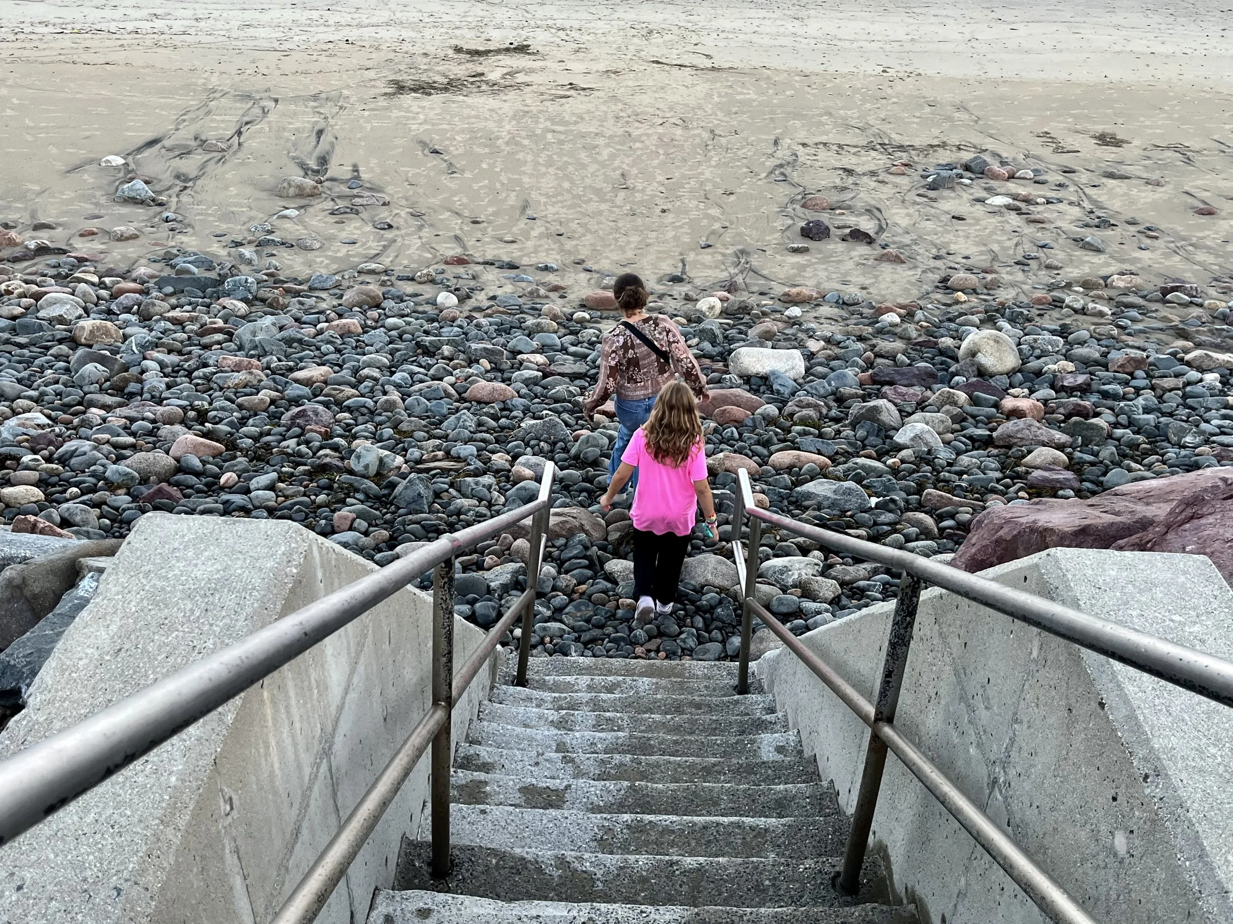 We’ve added caution tape and a notice to use care and proceed at your own risk to cross over the rocks. It’s about 10 steps to reach the sand, so feel free to ask for help or just a hand to hold.